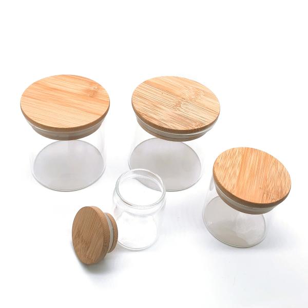 2oz 4oz 8oz 10oz Borosilicate Jars Silicone sealing Glass Jar with Bamboo wooden Lid